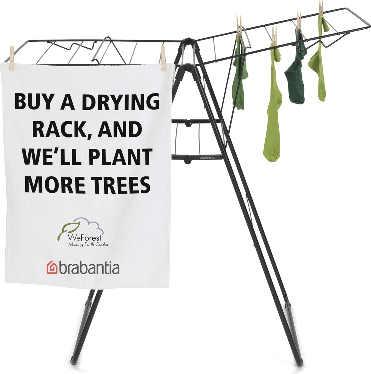 Brabantia is vastberaden op weg om al haar ontwerpen 100% circulair te maken. Dit droogrek helpt je niet alleen bij het besparen van energiekosten, maar is ook aardig duurzaam van zichzelf. Deze handige kanjer heeft namelijk een Bronzen Cradle-to-Cradle® certificering. Hij voldoet aan strenge eisen voor het (her)gebruik van materialen, hernieuwbare energie, watermanagement en sociale rechtvaardigheid. Hoe mooi is dat?