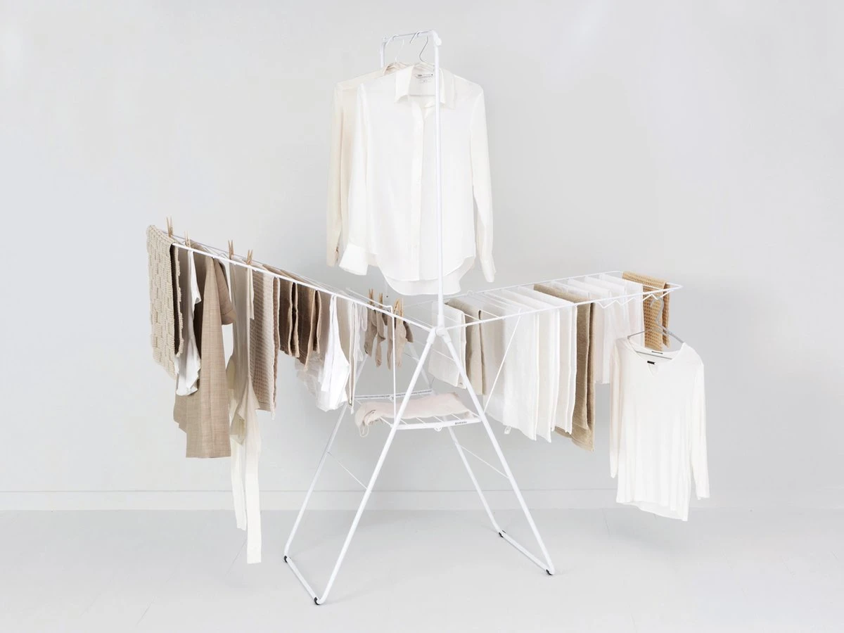 Bespaar tijd en energie door je was natuurlijk te drogen en bespaar ruimte door het met dit slimme Wasrek te doen! Dankzij de slimme stang, 25 meter droogruimte en 8 haken voor kleerhangers heb je op dit Brabantia HangOn Droogrek alle ruimte. Alles droog? Klap ‘m eenvoudig in tot een klein pakketje en berg ‘m op. Laat die wasdroger dus maar hangen!