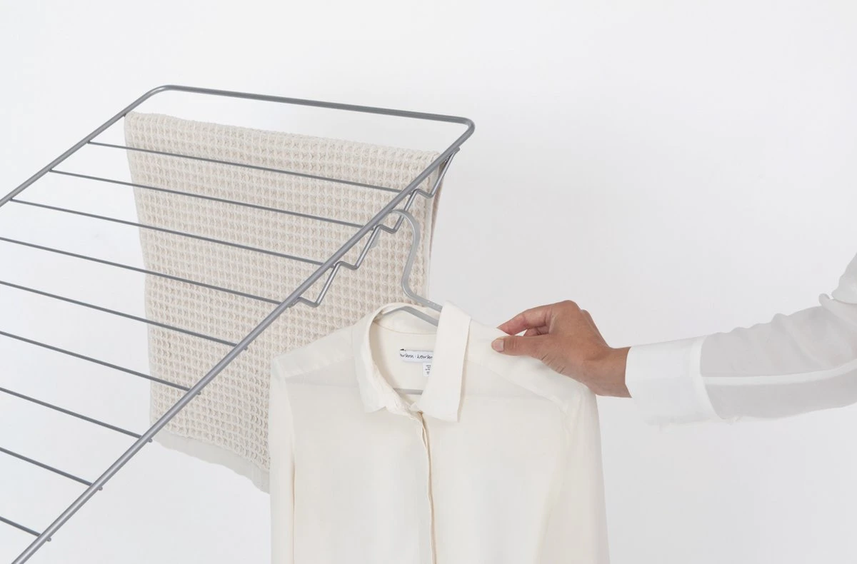 Bespaar energiekosten, vergeet je droger en hang je kleding op een droogrek uit de Brabantia HangOn serie. Stabiel, gemakkelijk in gebruik en verkrijgbaar in verschillende formaten in de kleuren Matt Black, White of Metallic Grey.