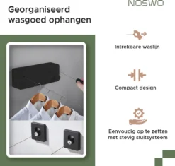 Prezza Waslijn Uittrekbaar – Waslijndraad – 12 Meter – Wasdraad – Uittrekbare Waslijn – Roldrooglijn