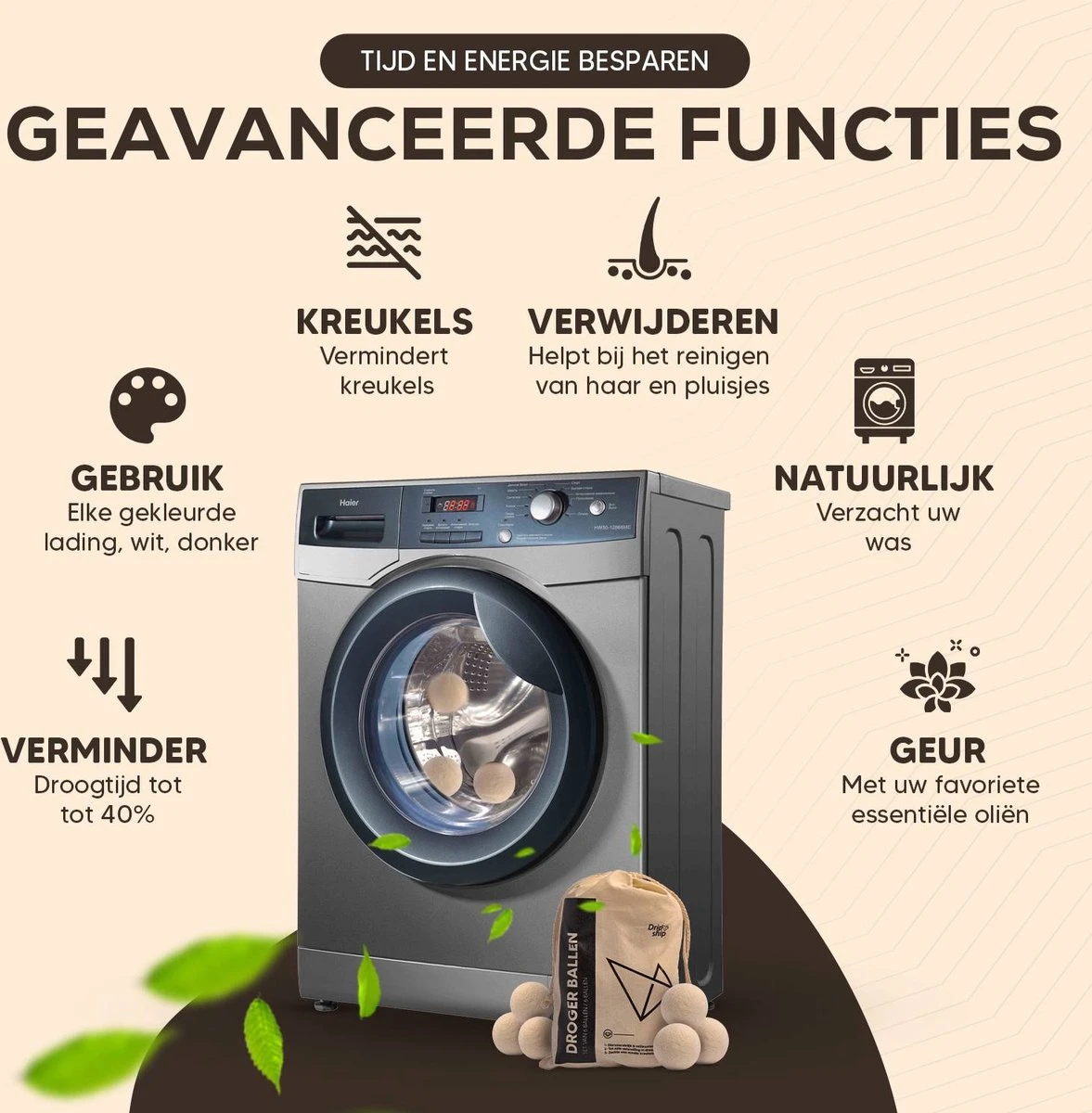 Opzoek naar een oplossing om de was sneller en duurzamer te drogen? Drogerballen zijn dé oplossing! De drogerballen zorgen voor een gelijkmatig en versneld droogproces, ook wordt de was nog eens ontzettend zacht! Hiermee tackel je 3 problemen, met maar 1 product. Wat wil je nog meer?