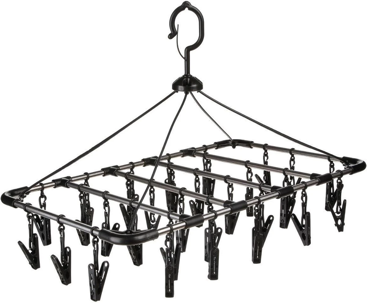 Droogcarrousel/droogmolen zwart met 32 knijpers 52 x 39 cm van kunststof. Een lichtgewicht wasrekje, geschikt voor licht wasgoed als sokken of ondergoed. Ideaal voor bijvoorbeeld op de camping of op een klein balkon. Afmeting: ca. 52 x 31.5 x 39 cm. Dikte wanneer ingeklapt ca. 1,5 cm. Materiaal: kunststof. Aantal knijpers: 32, deze kunt u verwijderen. Lengte knijpers: ca. 5 cm. Materiaal knijpers: metaal. Gewicht: 450 gram.