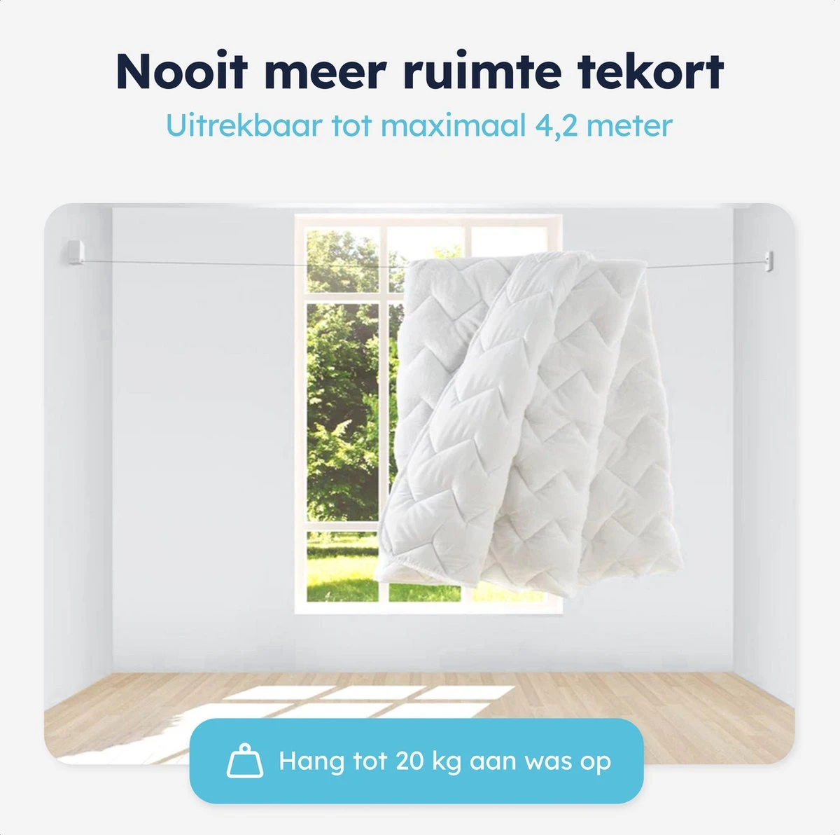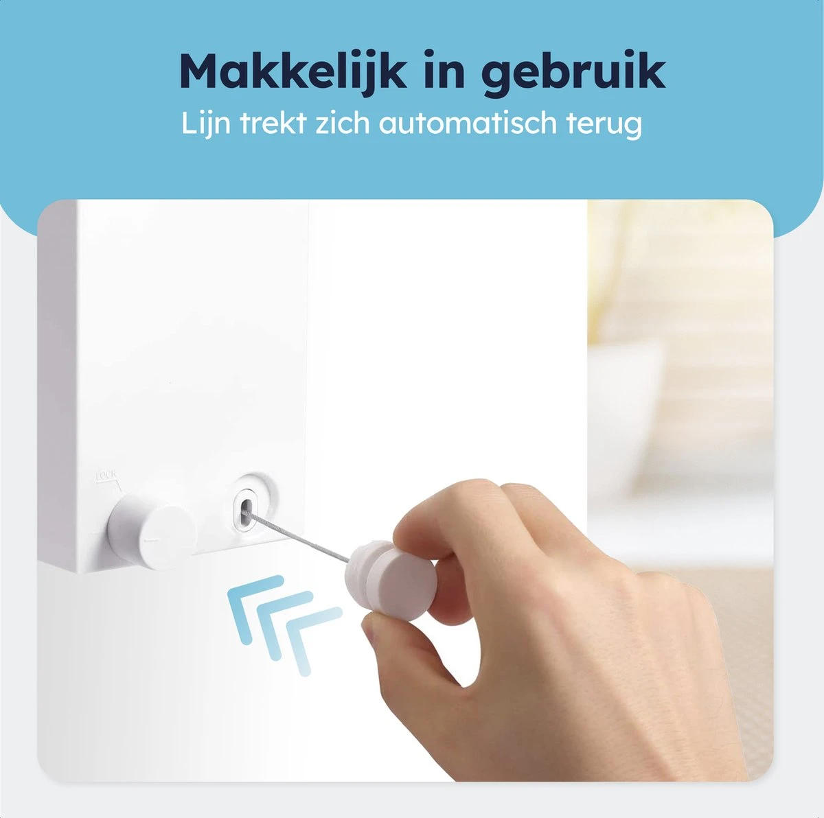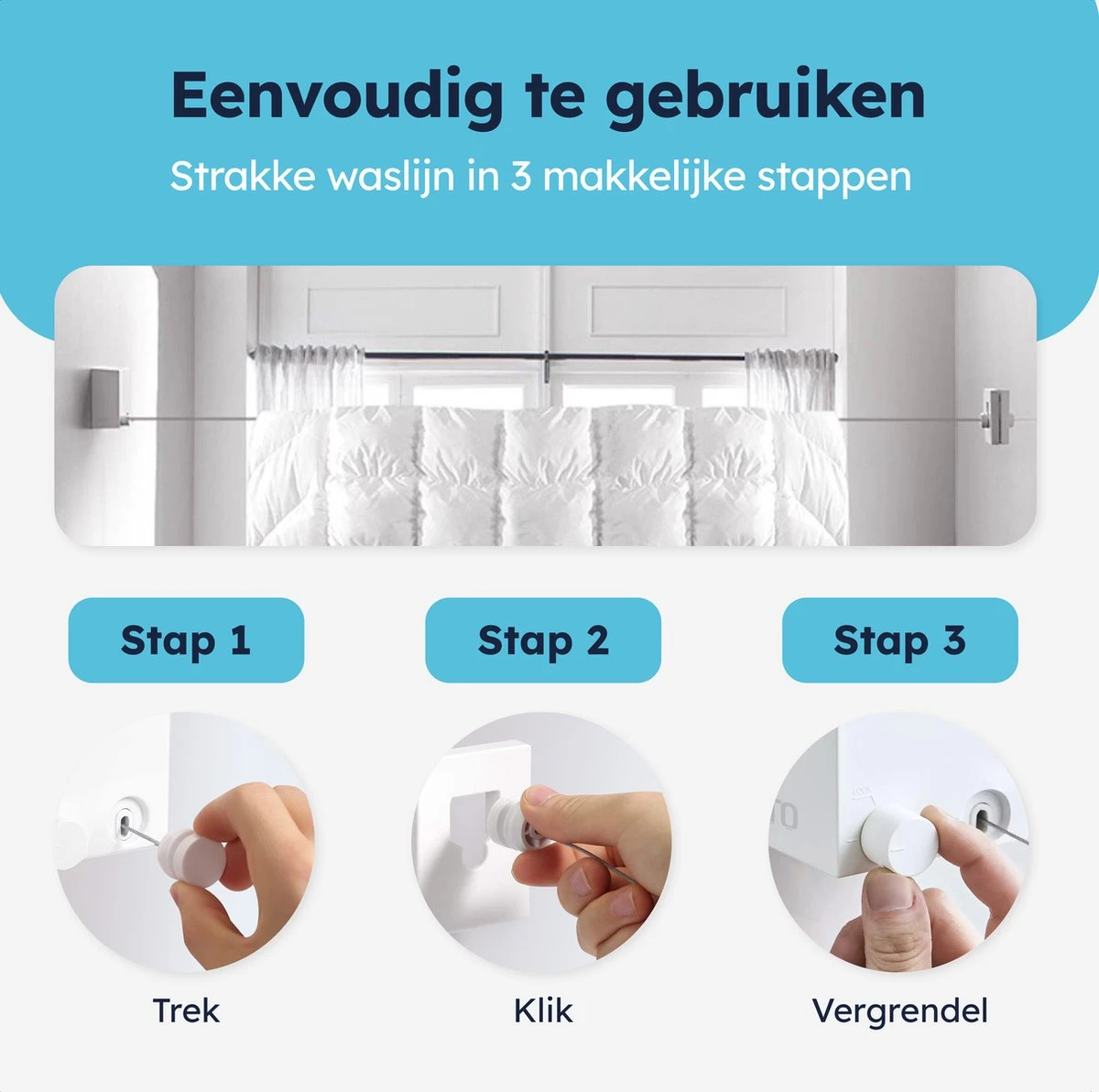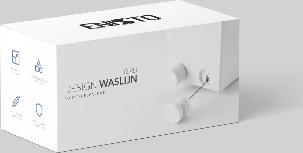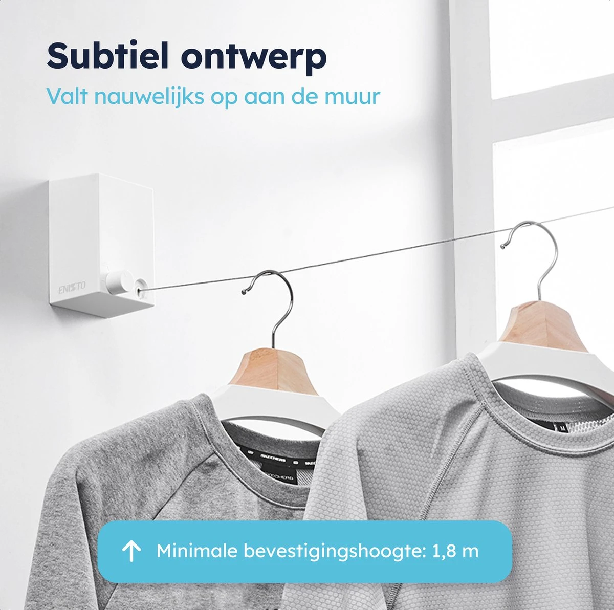 ENISTO® Waslijn – Uittrekbare Waslijn – Alternatief Droogrek – Waslijndraad Uittrekbaar – Roldrooglijn – Wasdraad – Ruimtebesparend – Wit – Enkele Lijn – 4,2 Meter – Met Of Zonder Boren