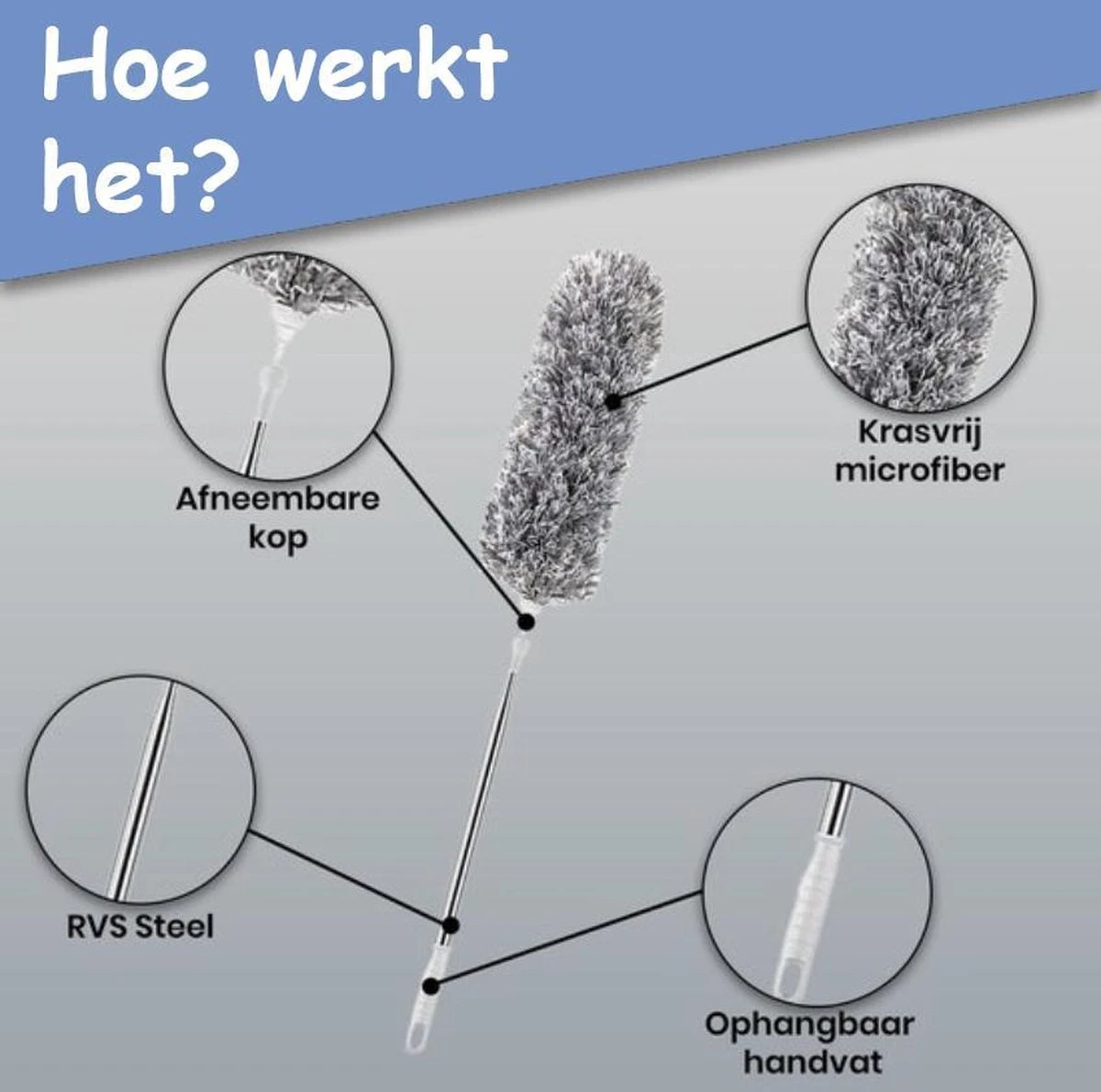 ✅Overal bij kunnen tijdens het stof afdoen? Met deze uitschuifbare plumeau kan dat! Zo hoef je nooit meer het plafon of dat hoge raamkozijn over te slaan. Met deze handige, uitschuifbare plumeau kun je jouw huis gemakkelijk schoonmaken. Zo is de extra lange steel uitschuifbaar tot maar liefst 2.4 Meter! Dit maakt de plumeau ideaal voor het verwijderen van hoge spinnenwebben of stof bovenop de kast.