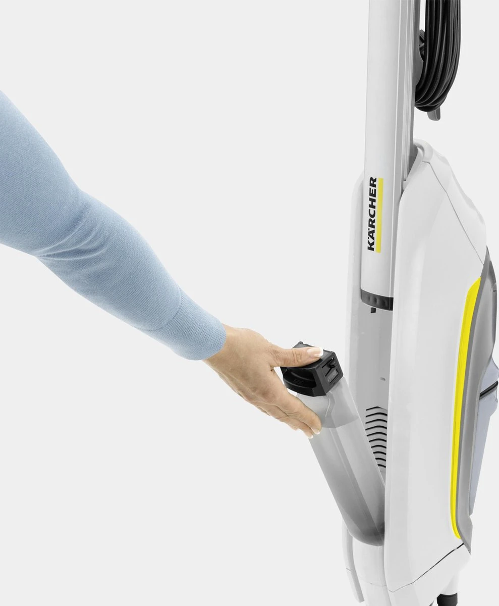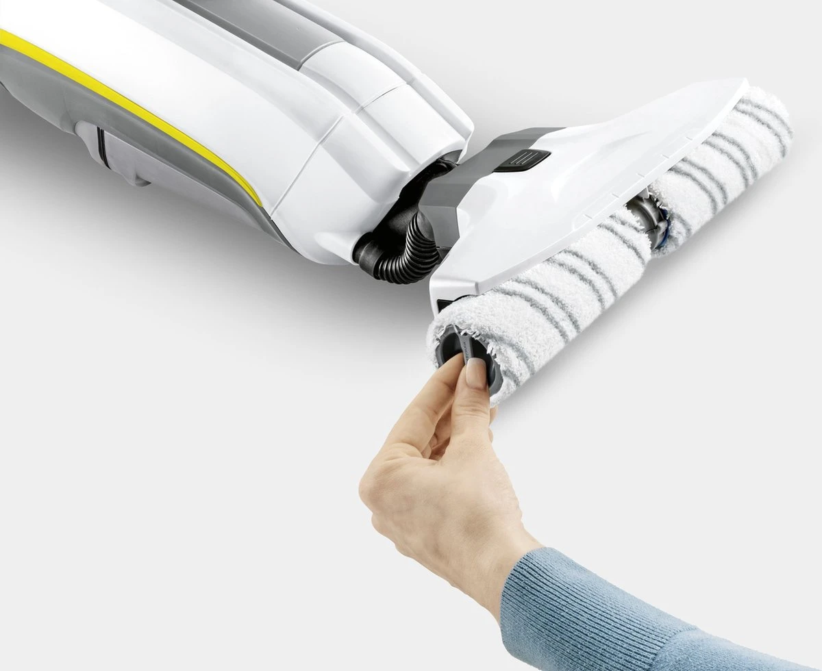 Eindelijk moeiteloos dweilen zonder tijdrovend vooraf zuigen: de Floor Cleaner FC 5 Premium maakt het mogelijk. Dankzij de praktische 2-in-1-functie kan vochtig en droog vuil in één keer worden opgedweild en afgezogen. De roterende en automatisch bevochtigde walsborstels van microvezel blijven altijd schoon en geschikt voor gebruik doordat de zelfreinigende functie het opgenomen mengsel van vuil en water continu van de walsrollen afzuigt. De Premium-uitvoering wordt bovendien geleverd met een reservepaar walsborstels, 500 milliliter universele reiniger en een proefflacon met 30 milliliter reinigingsmiddel voor houten vloeren. De FC 5 bespaart bovendien in vergelijking met traditionele methoden tot 85 procent water en levert een aanzienlijk betere reinigingsprestatie. De FC 5 kan worden gebruikt op elke harde vloer van hout, steen of kunststof. Inclusief 2-delige microvezelrollerset voor zachte reiniging en verzorging van alle harde vloeren. Pluisvrij, absorberend en slijtvast. Geschikt voor de wasmachine tot 60 ° C.