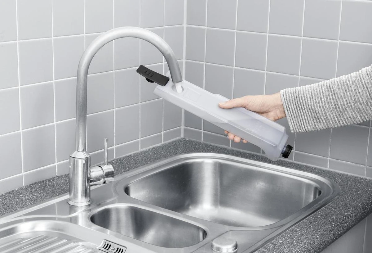 - Voor een oppervlakte van ongeveer 60 m², heeft de FC 3 slechts 600 ml water nodig