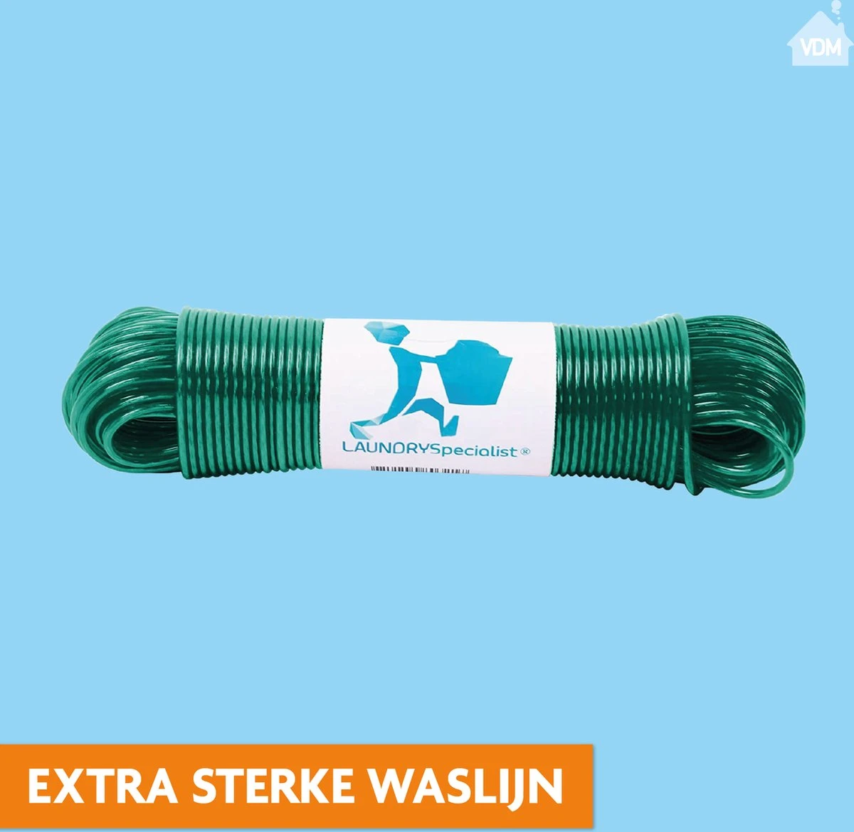 De waslijnen van LaundrySpecialist zijn uitermate geschikt voor iedereen die de was binnen of buiten wilt laten drogen. Deze drooglijn is UV- en weerbestendig en kan daarom veilig worden bevestigd in de tuin, op het balkon of terras. Zo kun je genieten van een extra frisse was door deze in de buitenlucht te laten drogen. Met 50 meter lengte biedt de waslijndraad voldoende ruimte voor al het wasgoed. De drooglijn bestaat uit een stevige stalen kern van maar liefst 2.5 MM en is omhuld met kunststof. Deze materiaalsamenstelling maakt de waslijndraad scheurvast. Daarnaast zijn in meerdere kleuren beschikbaar zijn, zoals rood, blauw, transparant, geel en wit. De waslijnen zijn geproduceerd conform de hoogste Europese standaarden.