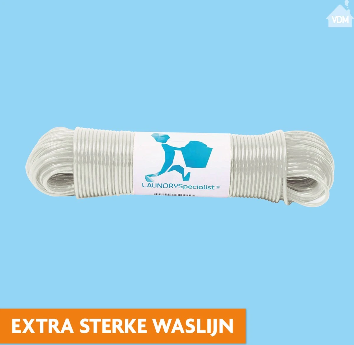 De waslijnen van LaundrySpecialist zijn uitermate geschikt voor iedereen die de was binnen of buiten wilt laten drogen. Deze drooglijn is UV- en weerbestendig en kan daarom veilig worden bevestigd in de tuin, op het balkon of terras. Zo kun je genieten van een extra frisse was door deze in de buitenlucht te laten drogen. Met 50 meter lengte biedt de waslijndraad voldoende ruimte voor al het wasgoed. De drooglijn bestaat uit een stevige stalen kern van maar liefst 2.5 MM en is omhuld met kunststof. Deze materiaalsamenstelling maakt de waslijndraad scheurvast. Daarnaast zijn in meerdere kleuren beschikbaar zijn, zoals rood, blauw, groen, geel en transparant. De waslijnen zijn geproduceerd conform de hoogste Europese standaarden.