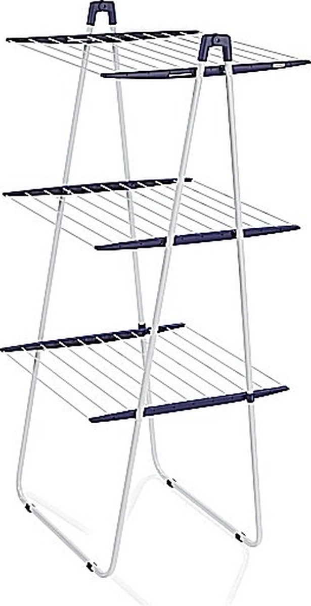 Ondanks zijn kleine staande oppervlak biedt hij enorm veel droogruimte: drie over elkaar liggende droogvlakken zorgen voor een totale drooglengte van 19 meter. Zo kan de praktische torendroger de was van twee machinevullingen dragen. Voor lange stukken was kan het middelste vlak worden ingeklapt.
