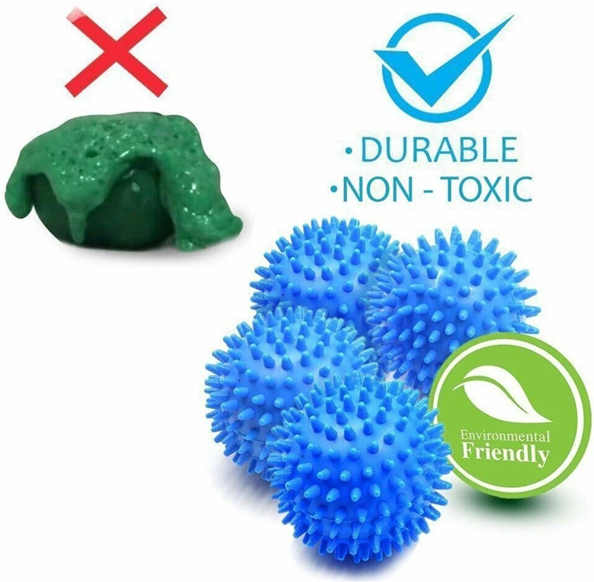 Deze handgemaakte wasdroger ballen zijn van 100% PVC. Daarnaast zijn de ballen natuurvriendelijk gemaakt, vrij van chemicaliën en zonder gifstoffen. De bollen zorgen voor een kreukvrij resultaat van uw was. Ook zijn de bollen herbruikbaar en gaan meer dan 1000 wasrondes mee. Doen dus!