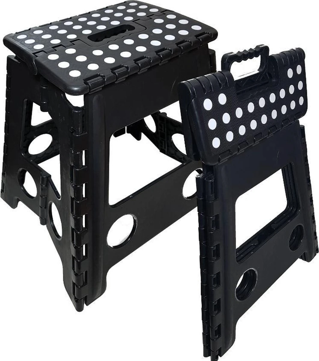 Inklapbare Kruk, gemaakt van stevig kunststof.