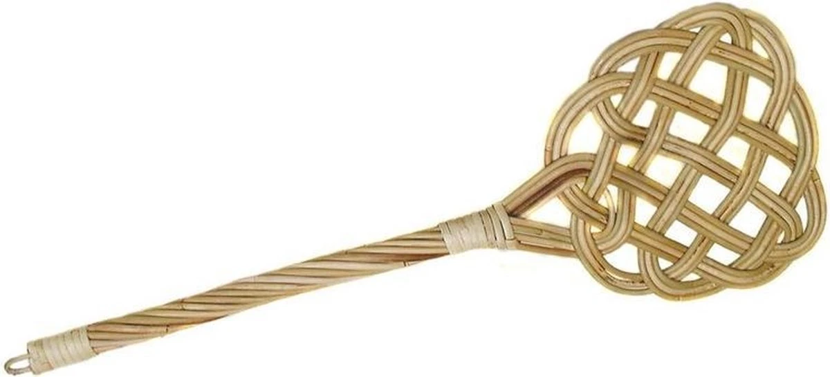 Mattenklopper gemaakt van rotan met een afmeting van 73 x 26 x 3 cm. Voor het uitkloppen van deurmatten, tapijten, kleden en lakens.