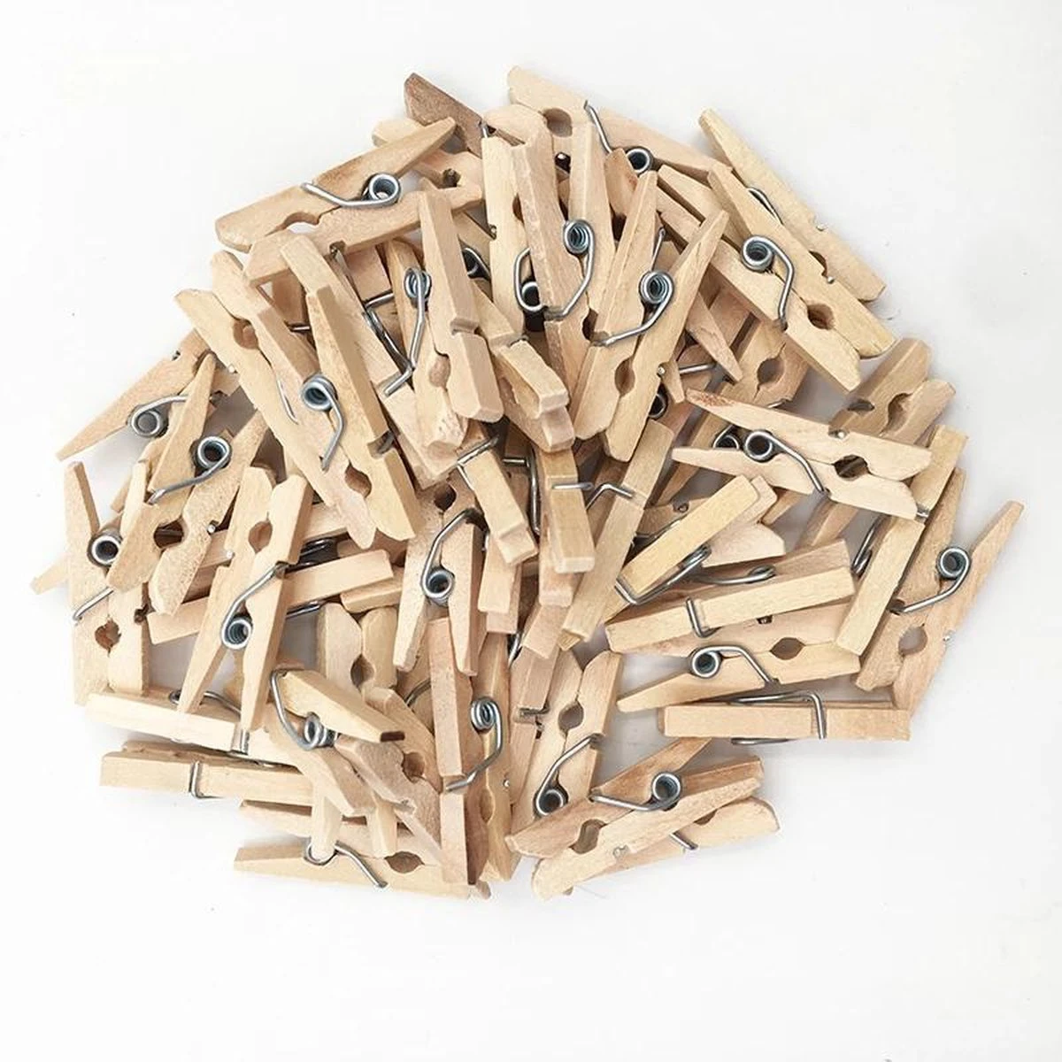 | Verpakkingsinhoud | 100 Witte mini houten wasknijpers van 3cm |