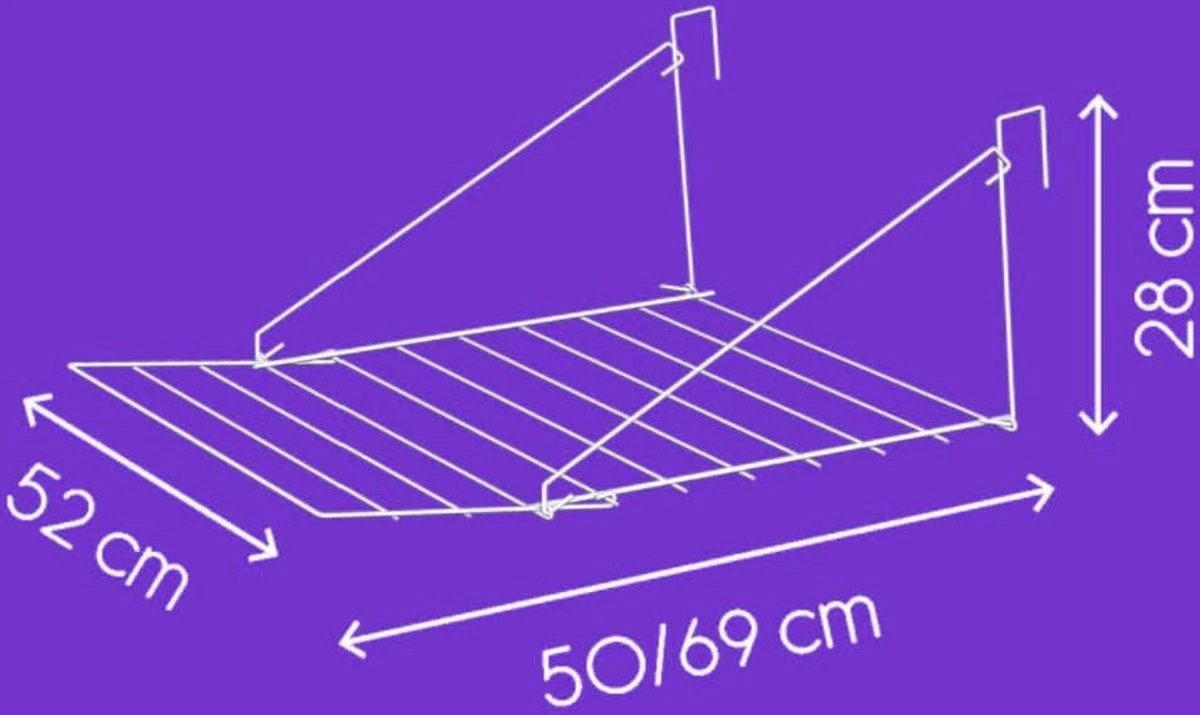 Dit droogrek is gemakkelijk en compact op te bergen door zijn inklapbare armen en is opgevouwen slechts 52x52x2,5cm. Geopend zijn de afmetingen van het droogrek 68x52x28cm. Het metalen droogrek heeft een witte geplastificeerde coating, een sterke en toch zachte beschermlaag. Na gebruik buiten, binnen opbergen! 2 jaar garantie. Made in Italy.