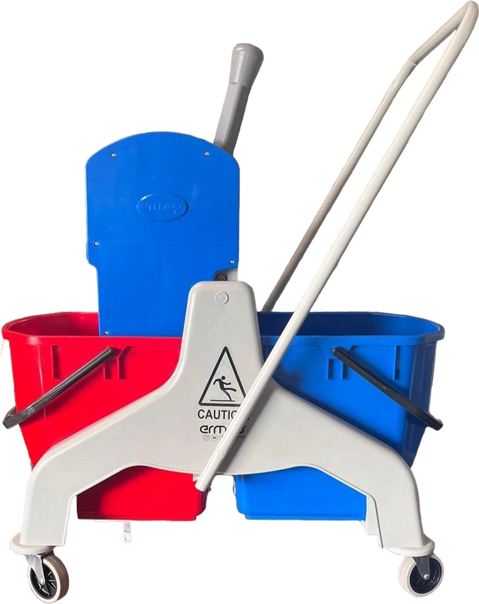 Mopwagen inhoud 2x 18L emmers blauw/rood inclusief wringpers geschikt voor proffesioneel gebruik.