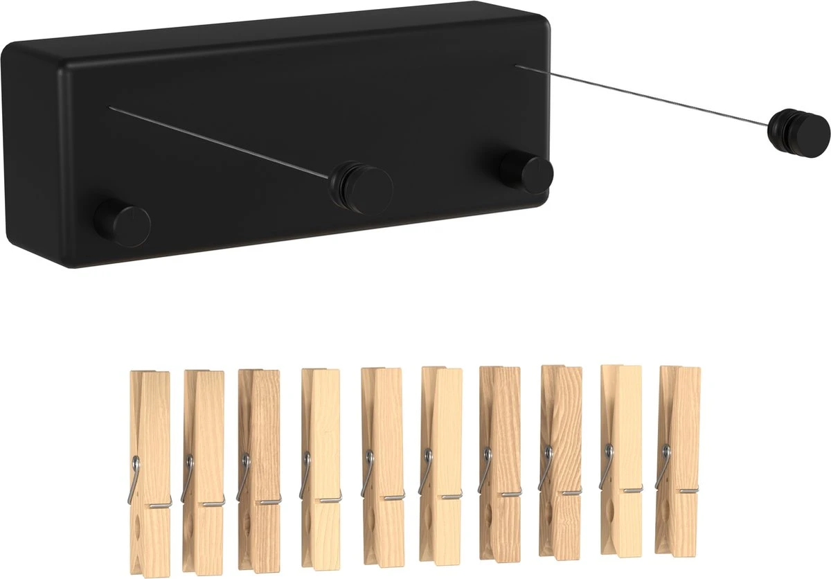 Het weerbestendige ontwerp zorgt ervoor dat hij bestand is tegen verschillende weersomstandigheden, waardoor hij perfect is voor gebruik binnen, maar ook buiten. Dankzij het gebruiksvriendelijke ontwerp kan iedereen het gebruiken, en de optie om het met of zonder boormachine te installeren, maakt het gemakkelijk om het op elke locatie te installeren. En met de meegeleverde verpakking van 10 wasknijpers kun je direct na ontvangst je kleding ophangen.
