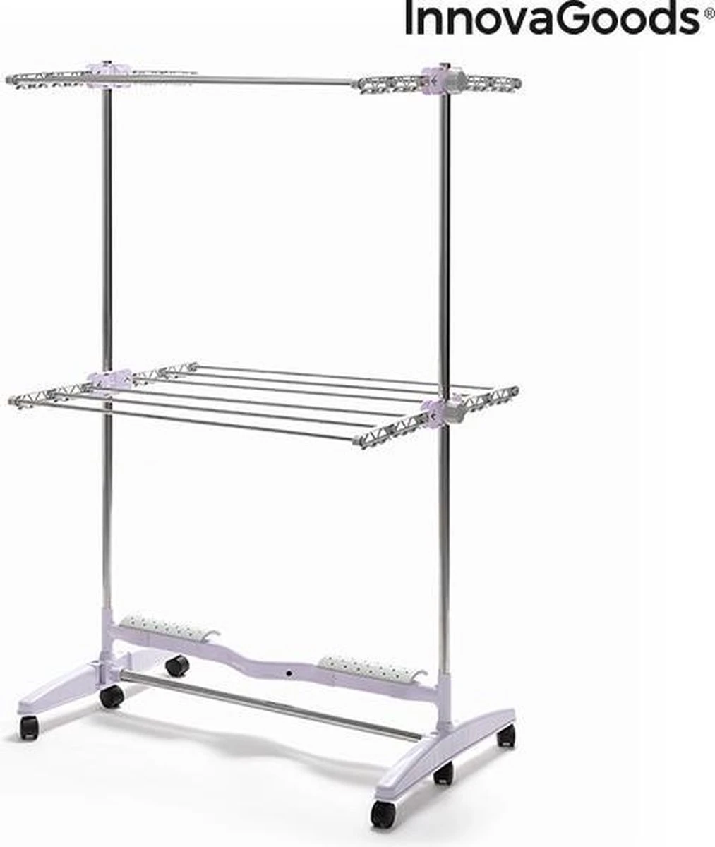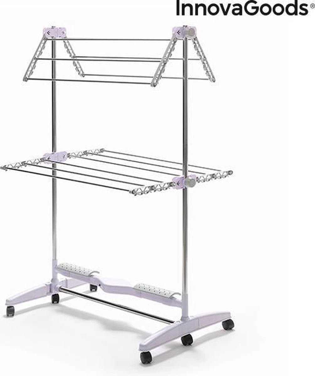 - Een effectief en origineel opvouwbaar elektrisch droogrek dat een natuurlijke luchtstroom genereert om het droogproces te versnellen, zonder de kleding te beschadigen.