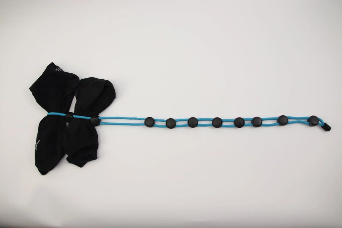 Door de handige zwarte verschuifbare knoppen op de lijn kunnen de sokken er gemakkelijk tussen geklemd worden.