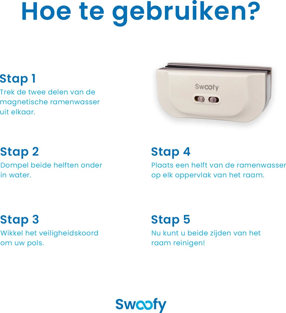Bestel de magnetische ramenwasser van Swoofy vandaag nog en voorkom, dat je onnodig veel tijd kwijt bent aan het lappen van jouw ramen!