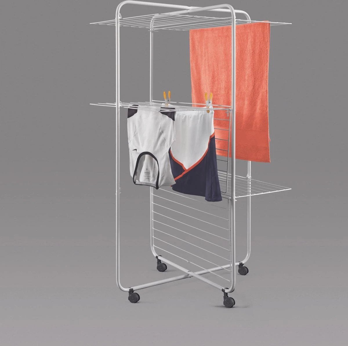 De Metaltex Nantes droogtoren heeft met zijn 3 etages maar liefst 33 meter drooglengte. De afmetingen zijn 64x72x123 cm. De Nantes droogtoren is gemakkelijk verplaatsbaar dankzij zijn 4 wielen die je er gemakkelijk onder klikt. De Metaltex Nantes droogtoren is in geplastificeerd ijzerdraad. Het is een zacht, sterk, standaard wereldwijde bekleding van ijzerdraadproducten. 3 jaar garantie. Geproduceerd in Italië.