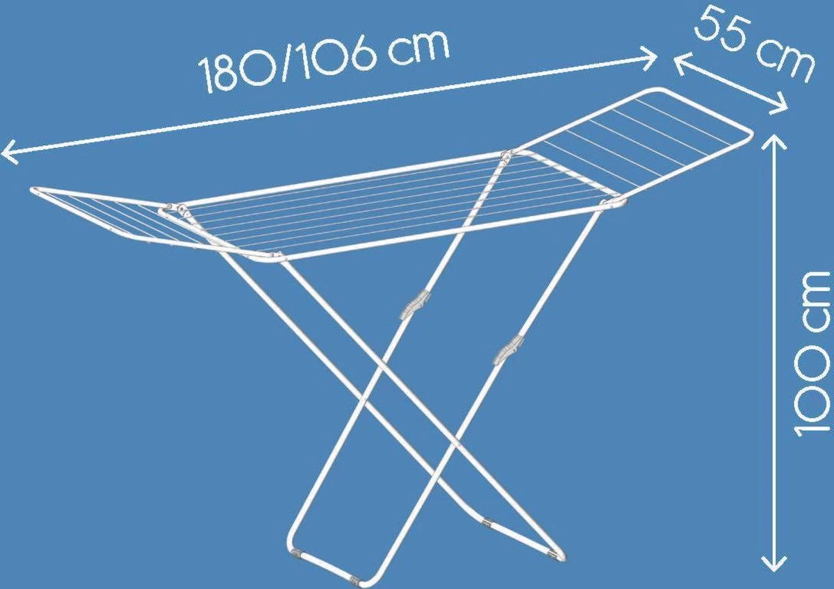 Vulcano staand vleugeldroogrek met 2 uitklapbare vleugels en een drooglengte van 18 meter.