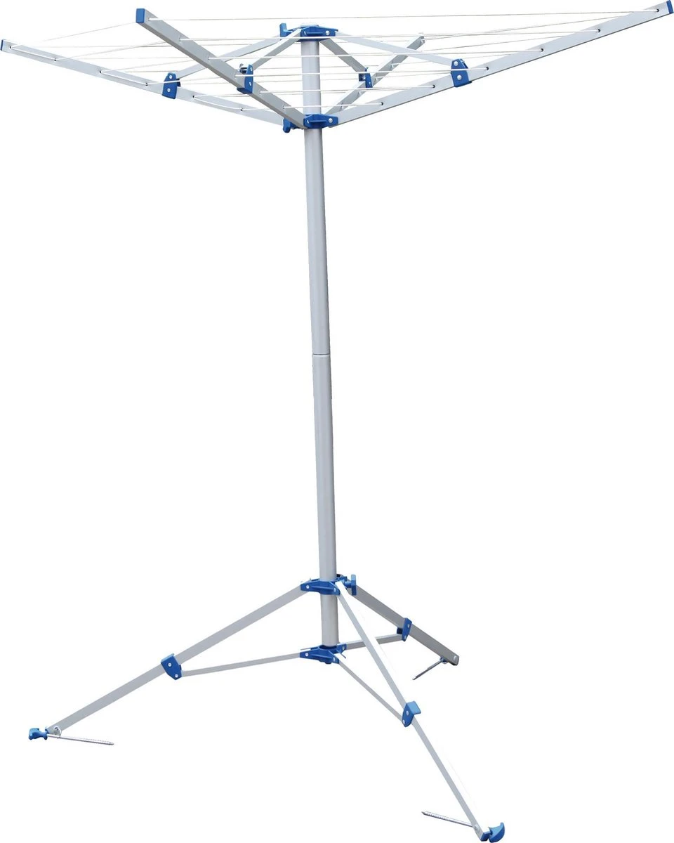 De Travellife droogmolen is gemaakt van stevig aluminium. Hierdoor is hij licht van gewicht, maar toch zeer stevig. Hij gaat dan ook jaren mee! Je kunt de wasmolen opzetten met de bijbehorende standaard, maar met behulp van een neuswielklem (niet inbegrepen) kun je er ook voor kiezen om de droogmolen aan de dissel van de caravan te installeren. De droogmolen heeft een gebruiksvriendelijk opvouwmechanisme waarmee je hem uitklapt en weer opruimt.