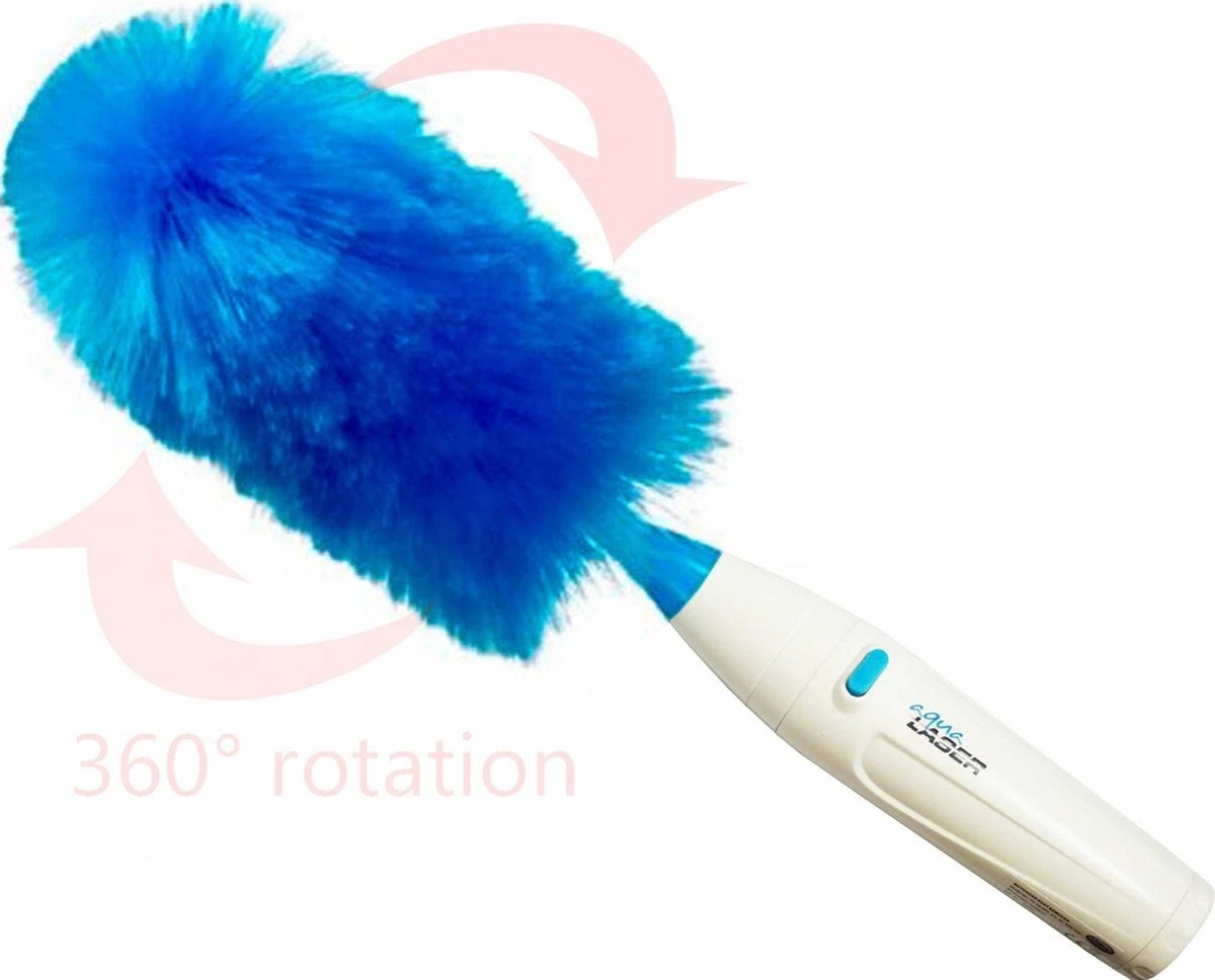 Deze superhandige spinduster op batterijen stoft razendsnel af en is veel veiliger voor kleine, wat wankel staande snuisterijen dan een gewone stofdoek. Elektrostatisch geladen haren trekken overal stof uit en vangen stof op. De Aqua Laser Turbo Duster heeft super zachte borstelharen, die zich aanpassen aan elke vorm van uw meubels en zachtjes stof weg-spinnen. Geen behoefte meer aan een veren stofdoek, doek of stof-reiniger. Boekenplanken, jaloezieën, meubels, gleuven, hoeken en andere moeilijk bereikbare plaatsen, ze zijn allemaal gemakkelijk af te stoffen. Met de verlengsteel kom je gemakkelijk bij hoger gelegen plekken als bovenop de boekenkast. De plumeaus zijn wasbaar en kunnen met de hand worden afgespoeld en vervolgens aan de lucht worden gedroogd.