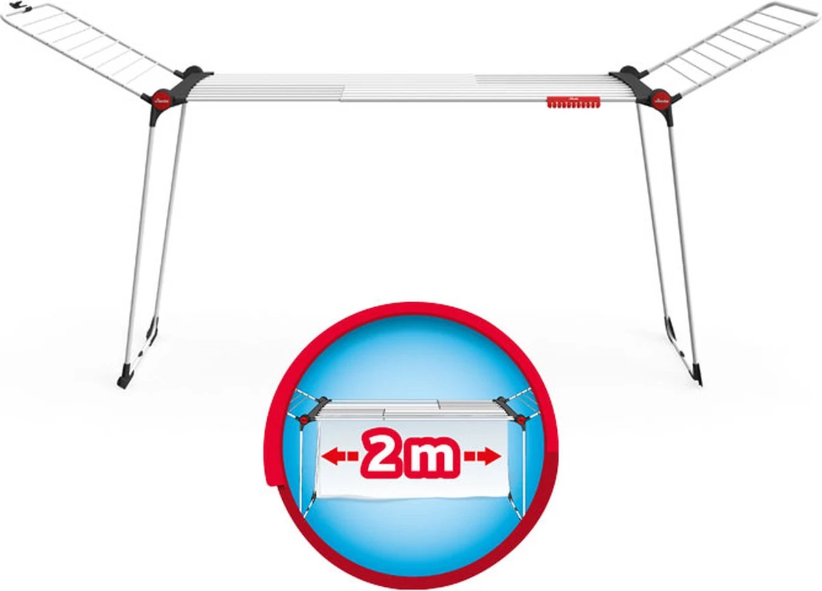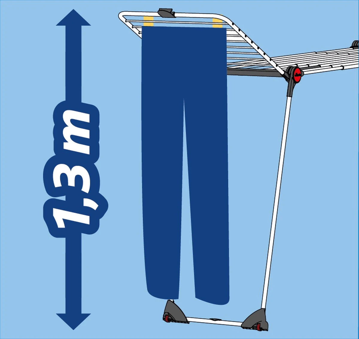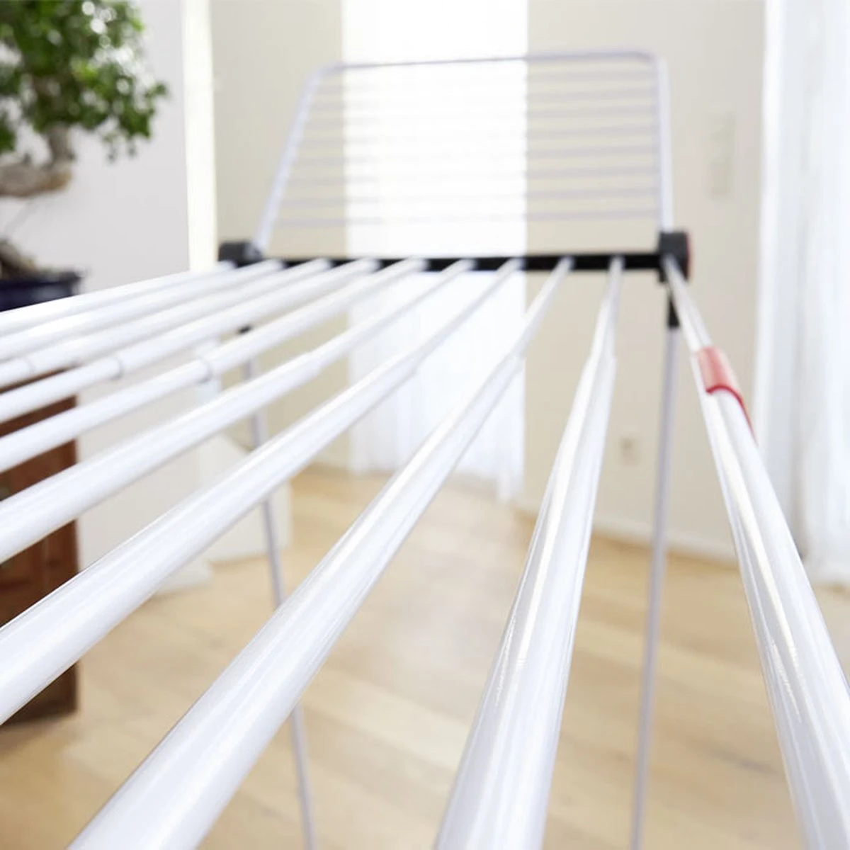 De innoverende telescopische buizen zijn extreem stevig, duurzaam en extra dik. Dankzij hun dikte laten ze minder vouwen achter op het wasgoed, waardoor u tijd wint bij het strijken. Zijn stevige parallelle poten en speciale scharnierpunten bieden een grote stabiliteit, zelfs wanneer het droogrek volledig uitgeplooid is en vol wasgoed hangt Bovendien hoeft u niet bang te zijn dat het per ongeluk dichtklapt.