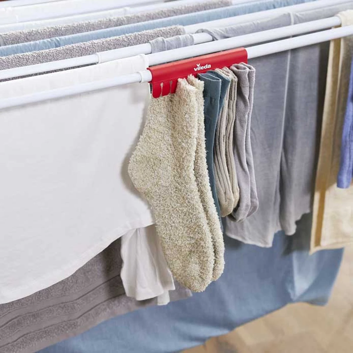 De hoge vleugels maken het mogelijk om zelfs de langste stukken op te hangen. Kleine stukken kunnen snel aan de sokkenhouder worden opgehangen.